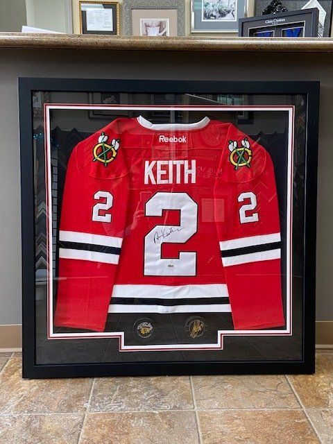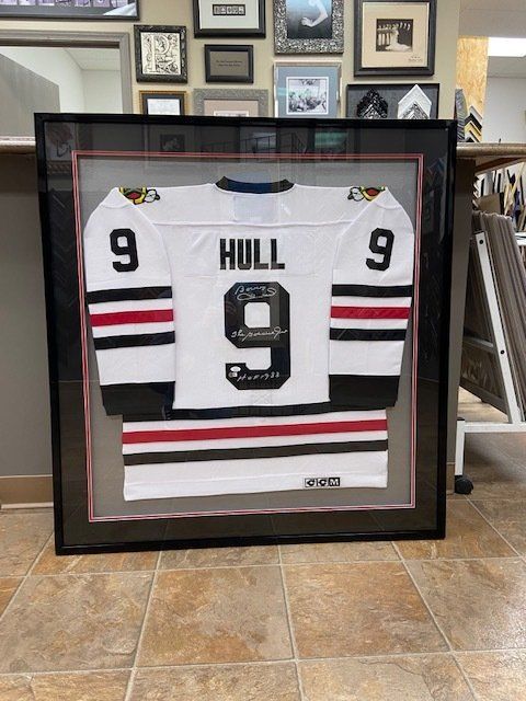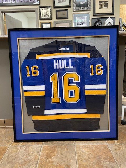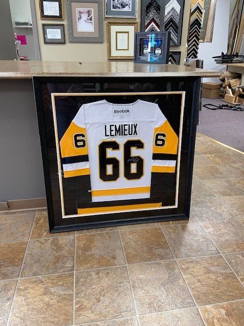 We can frame a variety of items, from jerseys and gloves to medals, belts, and other awards, and even combine them with photos of the event. Get in touch with us to discuss the details of your project. Take advantage of our framing incentives for large commercial projects.